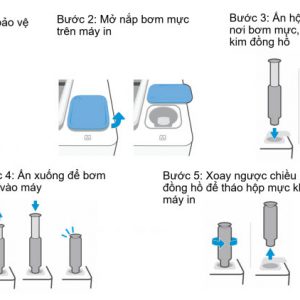 Bước 4: Bạn ấn thanh bơm xuống từ từ để bơm mực cho tới khi hết hộp mực.